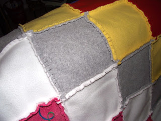 Ich habe diese Ragged-Decken schon oft bewundert. Da gibt es ja genau so viele Ideen und Muster wie bei normalem Patchwork-decken So habe ich mir gedacht "du hast noch so einige Fleece-Reste mit denen man nicht mehr großartig was machen kann" so habe ich sie zerschnitten und es hat noch für eine Decke gereicht. Vom im Schrank liegen werden die Stoffe eh nicht besser im Gegenteil. Aber eins kann ich euch sagen eine gut schneidende Schere ist das A und O. Vor allem sollte sie gut an der Spitze schneiden und das geht über die Finger. Na ja meine Fleece-Reset sind nun alle bis auf ein paar kleinere Abschnitte da bekommt unser Hund noch eine für seinen Hundekorb. Er mag es auch weich und kuschlig. Die Deck ist ein vorgezogener Nikolaus für meinen Schatz. Die hat sich gestern riesig gefreut als sie von der Arbeit kam und die Decke fertig war.