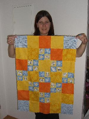 Ich hab nun mal nach einigen Bitten ein Foto hier für euch von dem Top meines ersten Quilts. Der Rest folgt dann noch