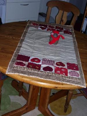 Und das ist meine Weihnachtstischdecke. Bin mit dem Rand noch nicht ganz fertig.