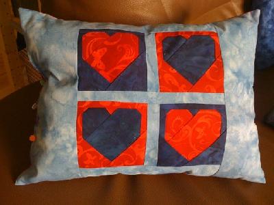 Ich war gestern bei einem PP-Kurs und habe dort 2 Herzen genäht. Es kamen zu Hause noch 2 dazu und nun ist mein neues Kissen fertig War eine spontane Idee, da ich sonst nicht gewusst hätte, was ich mit den Herzen anfangen soll. Der Kurs hat Spass gemacht und auch das nähen auf Papier.