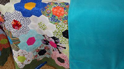 Ich würde eine der dunkleren Farben in uni aus den verwendeten Hexagonen verwenden - dunkles Grün würde mir zum Beispiel gefallen, aber auch ein schönes Blau.