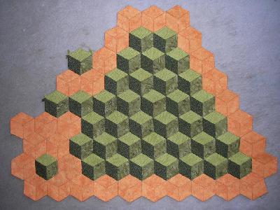 So, es geht weiter. letzten Dienstag habe ich den orangenen Stoff dazugekauft. Jetzt noch so viel, bis ich ein Rechteck habe und dann kommt der Rand dran.