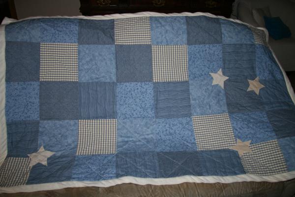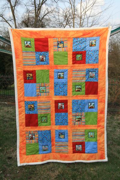 Und natürlich wollte dann mein Kleiner (10 Jahre) auch einen Quilt haben. Mit ihm zusammen habe ich die Stoffe ausgesucht und aufs Geratewohl einen Entwurf zusammengeschustert ( ich wurde also mutiger ):