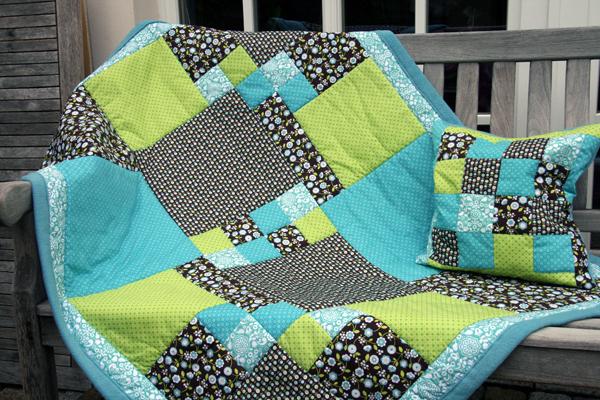 Der dritte Quilt war dann mal für mich - ein Ragtime und auch eine Materialpackung. Daran hab ich dann etwa vier Monate gesessen, immer wieder mit Unterbrechungen. Und erstmals mit passendem Kissen: