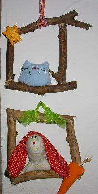 Die Rahmen sind aus Stöckchen, die ich unserer Hundedame geklaut habe. Jetzt ist sie mit mir beleidigt und schaut mich nicht mehr an