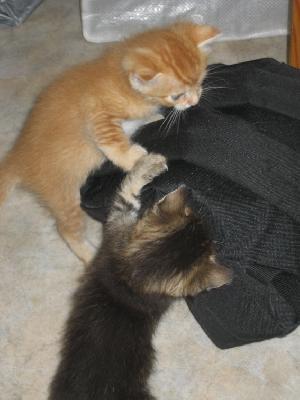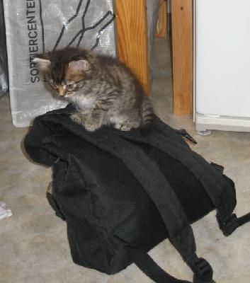 Den Kätzchen gehts auch gut, sie versuchten sich heute an der gefährlichen Besteigung des Rucksack-Berges