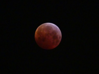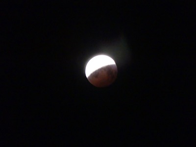 Die Mondfinsternis habe ich mir deswegen gut ansehen können. Leider war bei uns die Luft auch nicht so klar, aber ein paar Aufnahmen konnte ich machen. Nicht ganz 100% scharf, aber man kann's erkennen.