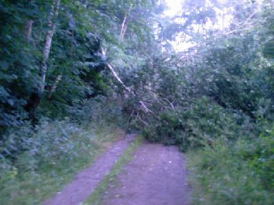 Hier tobte bis zum Mittag noch ordentlich der Sturm, als ich mit den Hunden aus dem Nationalpark komme, höre ich hinter mir ein fürchterliches krachen.......