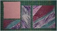 Jetzt wird es dreifarbig in meinem Fall Bunt, Rosa und Apriko. Wir benötigen wie das Bild oben zeigt einige Dreiecke die man aber nicht einzeln zuschneiden muss.