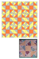 Jetzt wird es ein klein wenig traditionell. Nach folgenden Blog habe ich 2007 in einer Sammlung von traditionellen amerikanischen Blocks gefunden. Er trägt den Namen Idaho nach einem Bundesstaat im Nordwesten der USA und wird eigentlich in 4 Farbtönen gefertigt. Er ist aber auch ein schönes Beispiel für einen 9ner.