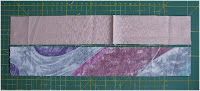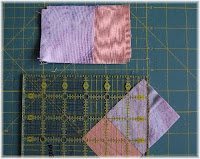 Das selbe jetzt noch auf der anderen Seite mit den Rosa Quadraten. Die Naht gut bügeln und ggf. auf 2 1/4 Inch mal 4 Inch zurückschneiden.