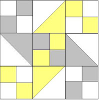 Dieser Block sollte eigentlich ein Doppel T (zweites Bild) werden, aber da ist mir beim zusammen nähen der rechten und linken Mitte und der oberen und unteren Mitte ein Fehler unterlaufen und so sieht das Ergebnis aus.