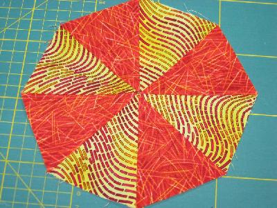 8.Diese Teile gut auseinander bügeln, die Nahtzugaben müssen immer auf die gleiche Seite zeigen und wieder zum Kreis zusammen legen (4 Segmente)