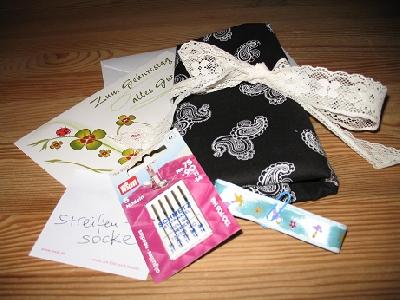 für eure superschönen Stoffe, Bänder, Knöpfe, Nadeln, Maßbänder und anderen schönen Sachen. Ich habe mich riesig gefreut!!!!!