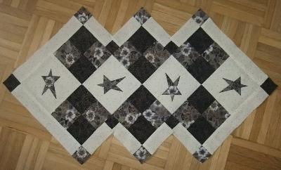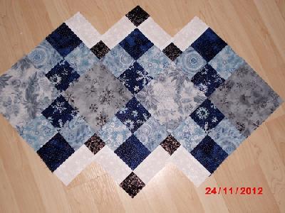 Weiter komme ich heute nicht. Ich will Schneeflocken aus dem kräftig-blauen Stoff auf die 4 Mittelfelder applizieren. Muss mir die aber noch aufmalen. Dazu fehlt mir heute die Zeit. _________________ Liebe Grüße