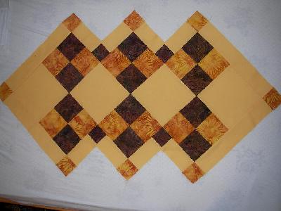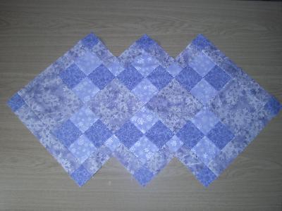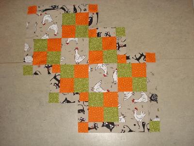 Muß jetzt erst die ganzen 4-Patch zurecht schneiden, meine sind alle größer wie 16,5 cm.