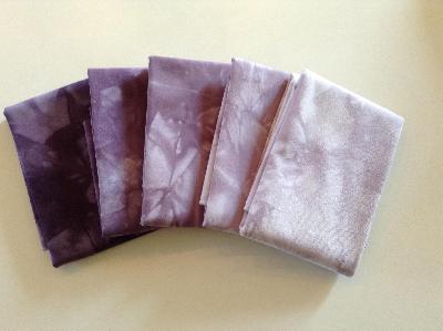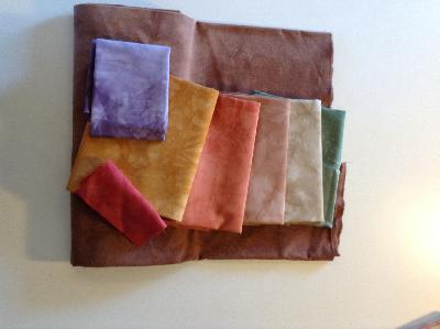 Eine Freundin aus den USA wollte gern eine Stufenfärbung von hell nach dunkel "in the colour of your German Milka Chocolate". Die Fat Quarter gehen dann gleich auf die weite Reise nach Phoenix/Arizona.