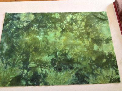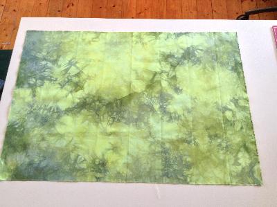 Die nächsten beiden Stoffe (je 50cm x 70cm) fand ich sehr spannend, das war eine echte Herausforderung. Eine Bekannte/Kundin, die hauptsächlich Landschaftsquilts macht und sich gelegentlich von mir Stoffe färben lässt, wollte gern Stoff mit folgender Beschreibung: