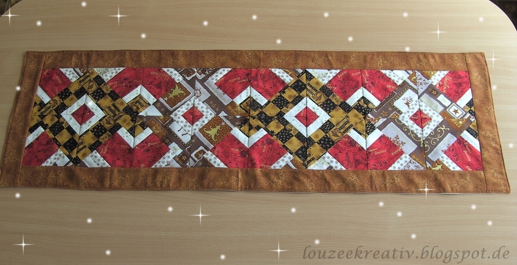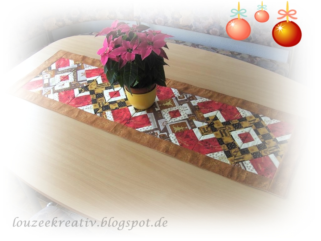 Ich wollte noch was Weihnachtliches für den Esstisch haben, so ist dieser Läufer aus Weihnachtsstoffen entstanden: