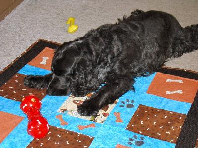Nachdem meine Schwiegertöchter und Freundinnen mit Taschen und Beuteln versorgt waren, sollte auch mein Hund etwas bekommen. Also nähte ich eine Hundedecke.