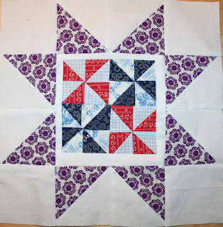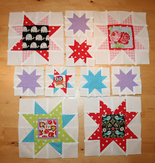 was ich besonders gut finde, ist dass die beiden unteren Blöcke eigentlich identisch sind vom Muster, aber durch die Anordnung der Stoffe es total unterschiedlich wirkt bei den Strahlen!!!