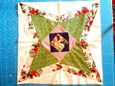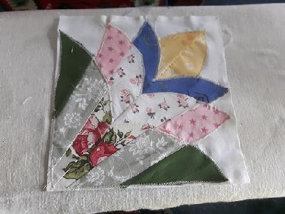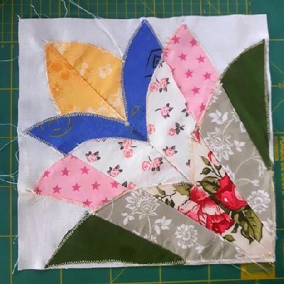 Ich bin gerade bei dem Block mit den Tulpen. Habe festgestellt, dass sich die kleinen Fummelteile mit den Y-Nähten von Hand sehr gut nähen lassen. Da ich selten von Hand nähe, bin ich begeistert. Es wird!