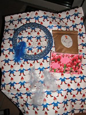 | Oh, schöne Geschenke! Der Traumfänger ist ja wunderschön! Ist das ne Eigenkreation? |