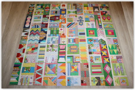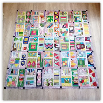 75 Blöcke zu 25 Blöcken genäht - 5 x 5 Blöcke.