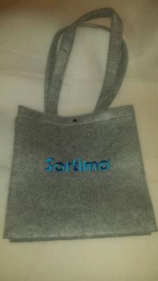 Kürzlich brachte mir mein Mann von der Messe eine Tasche aus kräftigem Filz mit,allerdings mit Firmenschriftzug.