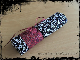 | Schön und praktisch ... nur Totenköpfe aus einer "Kosmetik-Tasche"? Ich bin zwar auch für gewagte Kombinationen aber ich denke, dass hätte ich mir nicht gewagt. Aber Hauptsache Dir gefällt das Stoffmuster. Die Farbkombi rot-schwarz-weiß finde ich super! |