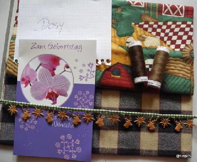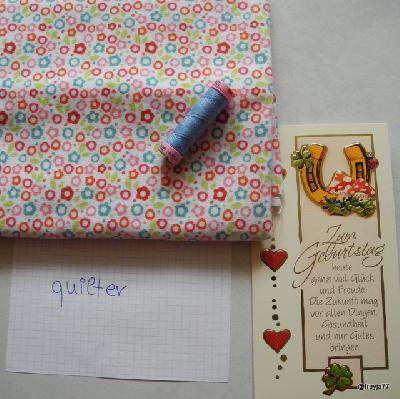aufgrund von Fieber, Husten, Nebenhöhlenvereiterung und co. komm ich heute erst dazu, dein Stoffpäckchen auf Reisen zu schicken.