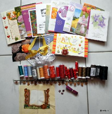 Hier noch mal alle Stöffchen sowie alle Karten und Beigaben zusammen.