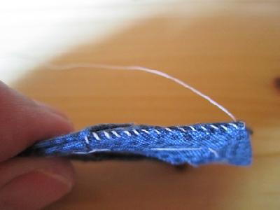 Zusammengenäht hab' ich mit den Überwindlingsstichen (extra in weiß, damit man's sieht)