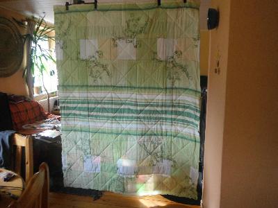 Hier von hinten, das ist ein Flanell-Bettbezug: