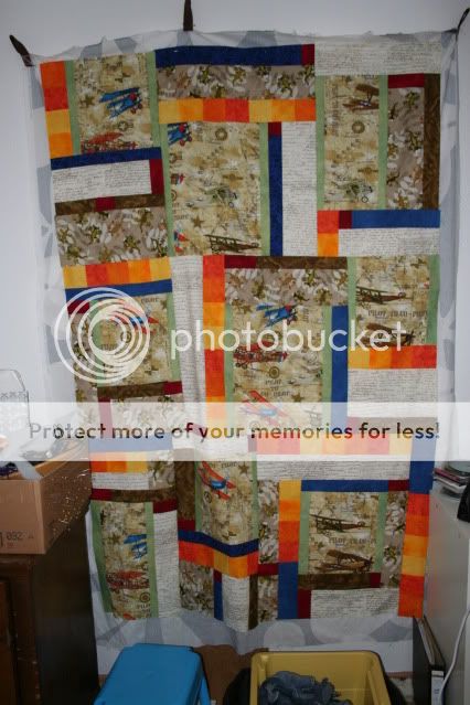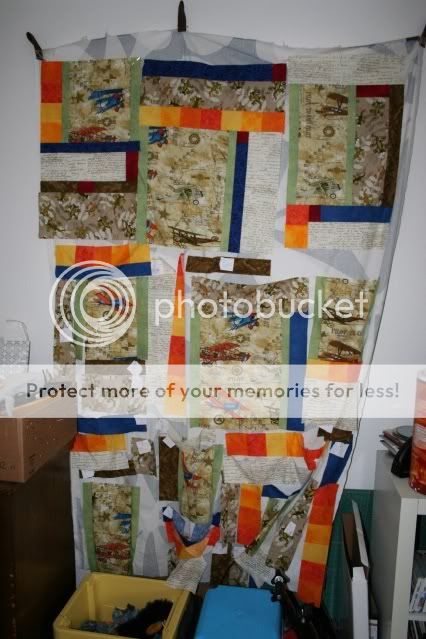 Ja, es ist ein Themenquilt und soll das Hobby meines Freundes und meines zeigen (er fliegt Modellflugzeuge, in halte und züchte GEckos). Der Name wird "you and I" .