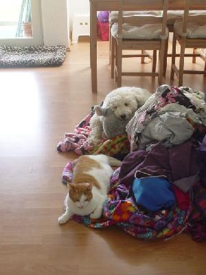 Hast ganz Recht: was ist schon ein Quilter ohne Katze/Hund/Maus/Laus..... ich gehöre auch dazu!!!! Bild nach dem Stoffmarkt in HH.