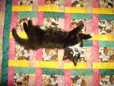 Meine Katzen werden von Quilts magisch angezogen, da ist es auch egal, wenn der Quilt (oben) eigentlich für den Hund genäht wurde: