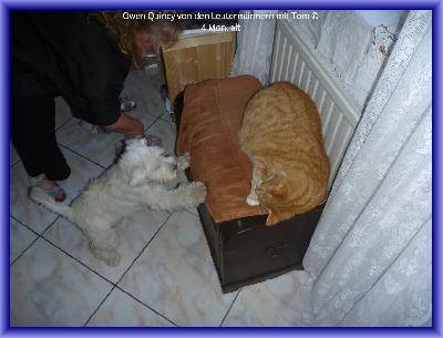 Oh, wie ich das Foto mit Tom lustig finde: man sieht, dass Quincy sooo gerne spielen würde. Bei Tom würde man grad meinen, es wär mein Kater