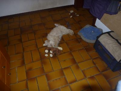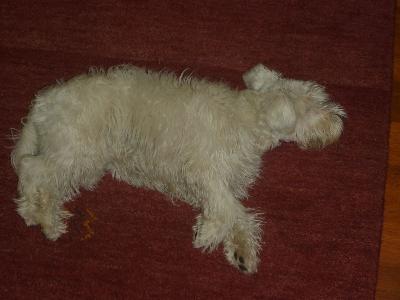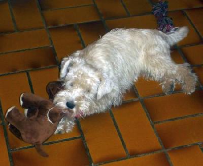 Und so sieht ein frisch gebadeter Mini- Flokati aus, der erst noch toben musste: