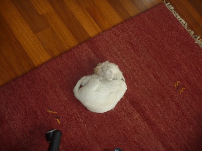 Nun schläft das Kerlchen schon wieder. Aber nachher geht's mal Richtung Hauptstraße (30iger Zone bei uns), damit er sich an die Autos gewöhnt.