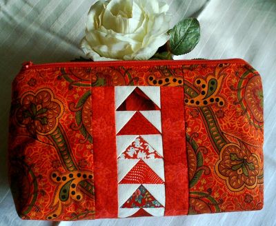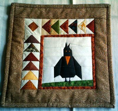 Habe mich am Rabenbild von Regina Grewe versucht. Leider schaut er ein bißchen dümmlich, da ich die Augen zu hoch angesetzt habe. Und weil mir das Nähen der PP-Gänse solchen Spaß gemacht hat, habe ich gleich noch ein Täschchen mit Gänsen in rot gemacht.