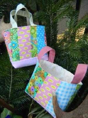 Ein Osterkörbchen und ein kleines Täschchen.