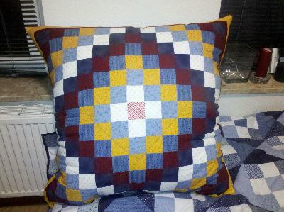 das ist das Ergebnis meines "Trip around the world"-Kurses. Nun hat das eh schon große Kissen sogar noch einen Rand bekommen .