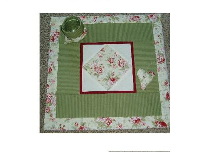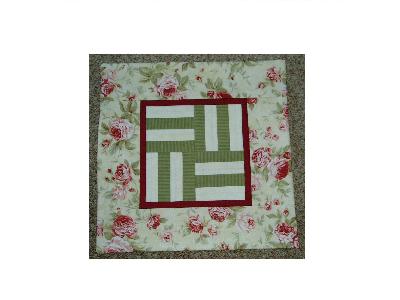 Eine kleine Decke 34 x 34 cm sowie ein Kissen - ist noch nicht fertig - hab mich mit den Streifen verschnitten somit reichte mir der Stoff für den Hotelverschluß nicht um wenige cm Hätte der Rosenstoff sein sollen
