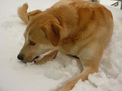 Nun zeige ich Euch mal einen, der den Schnee auf dem Balkon genießt.