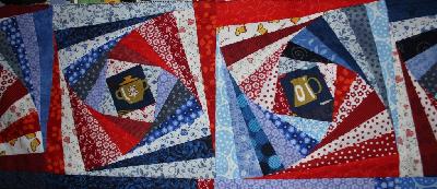 Rundherum werde ich einen hellblauen Rand annähen,mit Thermolan abfüttern und dann fängt das Quilten an. Wie ,weiß ich noch nicht.