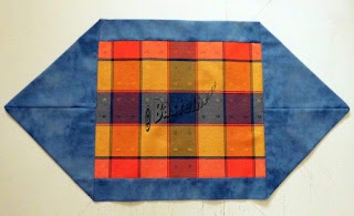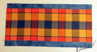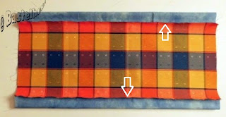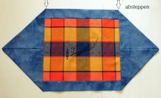 ... wenden, der karierte Stoff liegt schön mittig zwischen den blauen Streifen und bügeln.