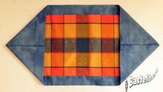Den Stoff wieder auseinander klappen und die zusammengenähten Zipfel auf den karierten Stoff umklappen .....