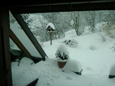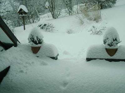 Eigentlich wollten wir heute zu meinen Eltern fahren, nachdem wir gestern Abend mal vorsichtshalber nicht gefahren sind. Wir haben dann heute morgen telefoniert, bei denen sieht's genauso aus wie bei uns und auf den Autobahnen herrscht das gepflegte Chaos. Schade - mein Vater hat heute Geburtstag und wir wären so gerne hingefahren. Nun ja, wird auf April verschoben, dann wird's ja hoffentlich keinen Schnee mehr geben ....