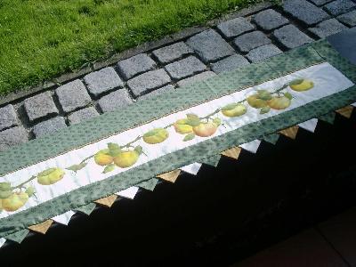 Und jetzt kommt der Vorhang. Die Äpfel und die Blätter habe ich gequiltet.